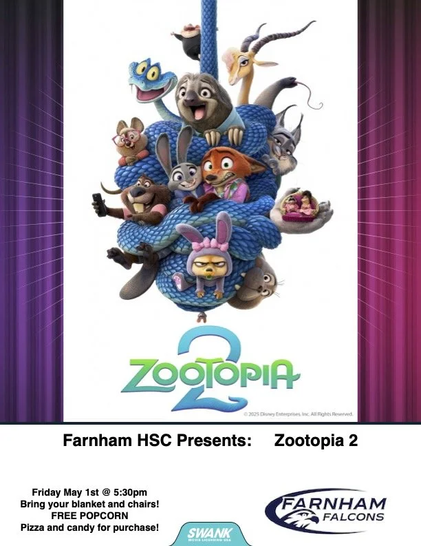 May 1 at 5:30pm in the cafeteria. Join us for our last Movie Night of the Year as we watch Zootopia 2. Bring a chair or blanket, enjoy popcorn on us and grab your favorite movie candy or some pizza from the concession area.